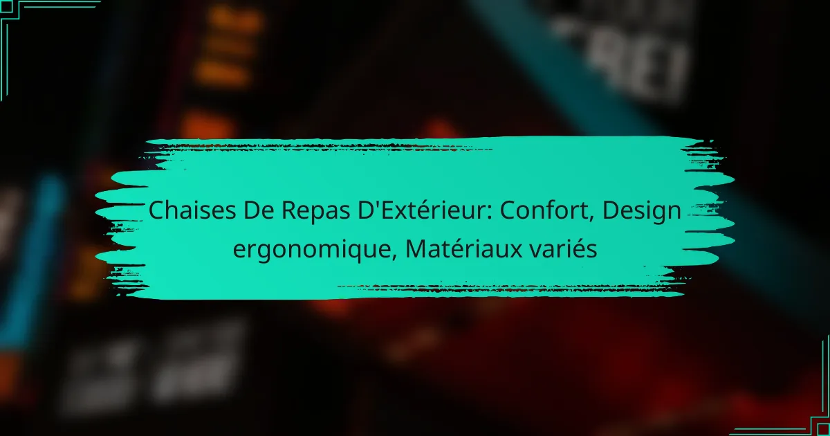 Pour choisir des chaises de repas d’extérieur adaptées, il est essentiel de considérer le confort, le design ergonomique et les matériaux utilisés. Une bonne chaise doit non seulement s’intégrer à votre espace extérieur, mais aussi offrir un soutien adéquat pour des repas prolongés.