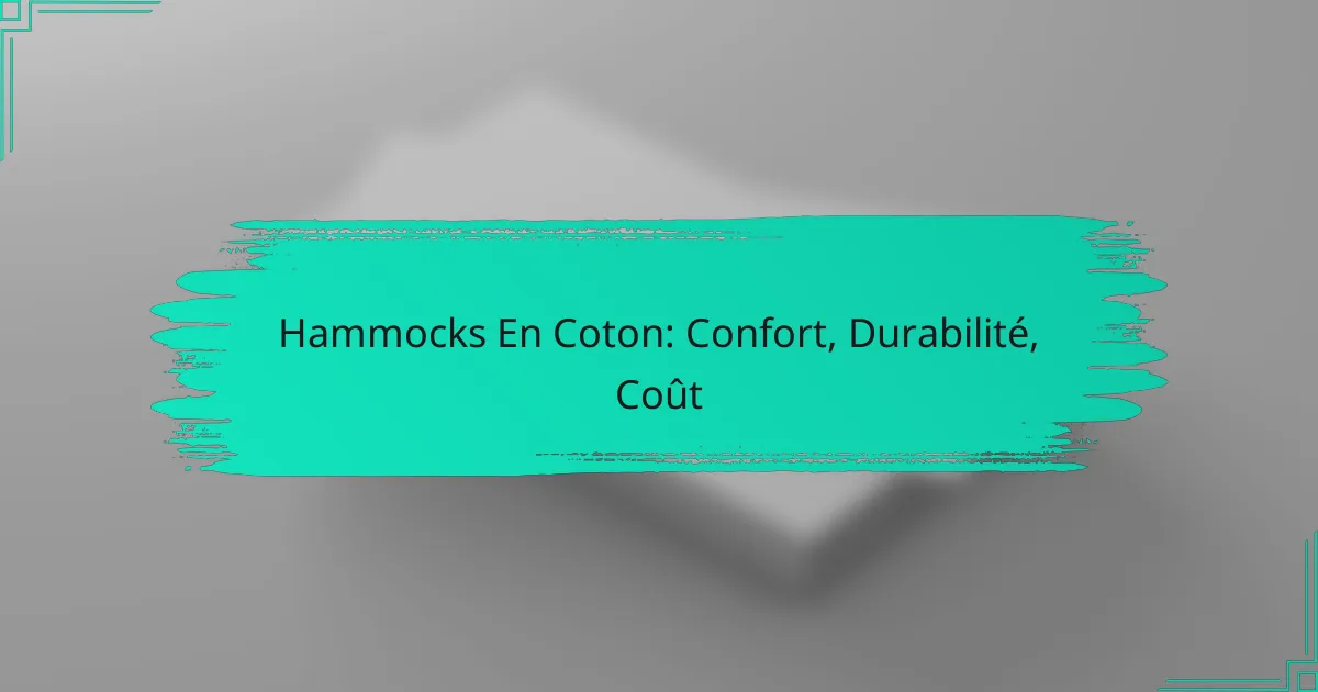 Pour choisir un hamac en coton, il est essentiel de considérer son utilisation prévue, les dimensions, la capacité de poids, le type de suspension et le coût. Un bon hamac doit allier confort, durabilité et un prix raisonnable selon ses caractéristiques.