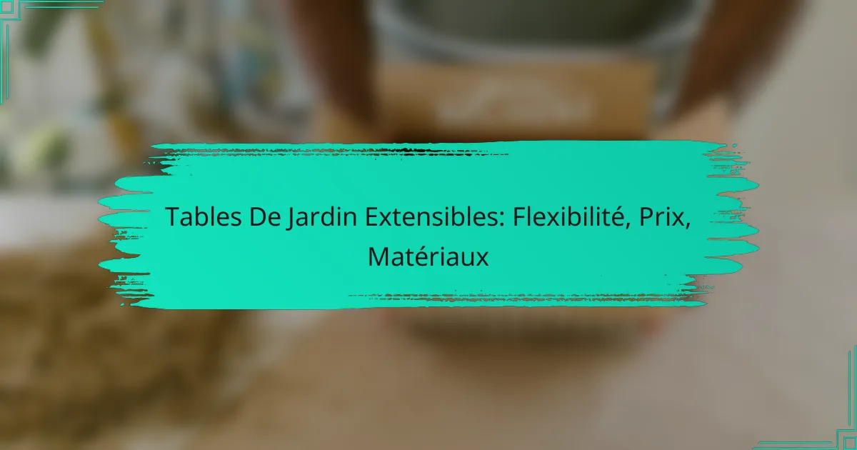 Les critères de sélection d’une table de jardin extensible incluent la qualité des matériaux, la robustesse de la structure et la facilité d’extension. Optez pour des matériaux résistants aux intempéries, comme l’aluminium ou le teck, qui garantissent une durabilité accrue.